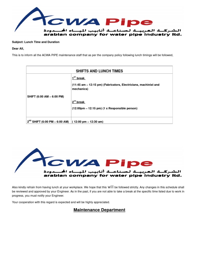 Lunch Break Schdedule Email 40 Free Employee Schedule Templates Excel Word A Templatelab Use The Email Templates Below When You Need To Host A Live Or Online Meeting from i2.wp.com Are there exceptions to the requirement to provide meal breaks? Sitting somewhere for 30 minutes cooling down, only to have to get back up and out into the sun is incredibly taxing and pushes the end of our day further into the hottest part of the day. I have to take my break after 2pm as lunch time is our busiest time at work. You should plan to take your meal break sometime in the middle of your shift/work period. For more information, please email us at help@boli.state.or.us. However, when employers do offer short breaks (usually lasting about 5 to 20 minutes), federal law considers the breaks as compensable work hours that would be included in the sum of hours worked during the workweek and considered in determining if overtime was worked. Federal law does not require lunch or coffee breaks. If you are not given a meal period as a minor employee, your employer is violating florida laws about breaks and may be liable for paying fines and penalties.